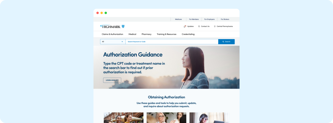 The Provider Portal is a centralized digital platform that serves as a critical interface between Highmark and its provider network. It offers access to essential resources, including policy updates, credentialing information, claim status, reimbursement guidelines, and program participation tools. Designed to support both clinical and administrative workflows, the portal enables providers to self-serve, stay informed, and engage with Highmark more efficiently—ultimately enhancing care delivery and operational effectiveness.